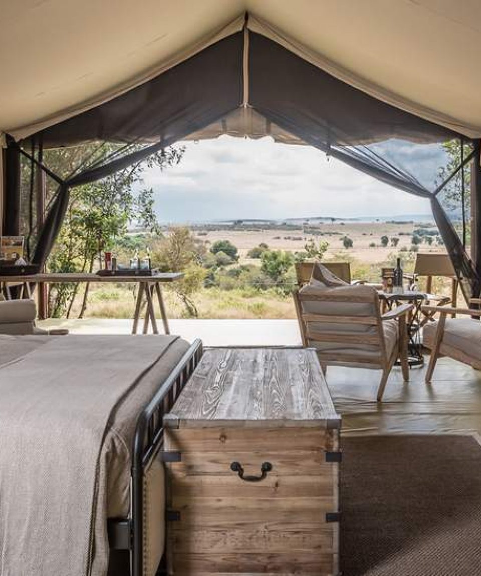 Entim Luxury Camp is hidden in the lush wilderness of Kenya’s legendary Maasai Mara Game Reserve, overlooking the plains and the Mara River right in the heart of the migration area – one of the Seven Wonders of the World – only 10 minutes away from the main Wildebeest Mara river crossings during the migration.