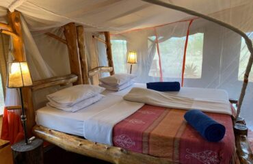 Set in the midst of an incredible scenery of savannah and skies, you find Ikoma Tented Camp, sheltered in a grove of acacia trees. Ikoma has 35 traditional semi-luxury Meru tents, each under thatch with a private veranda overlooking the impressive plains of the Serengeti. The central restaurant and bar area boast a large camp fire an ideal spot to unwind with a chilled drink after a long days of exciting game viewing. Ikoma Tented Camp is ideally situated at the border of the world-renowned Serengeti National Park, along the path of the migrating wildebeests between Kenya and Tanzania. From Ikoma you can enter the western corridor of the park, taking in Kirawira and the Grumeti river home to the giant wildebeest eating crocodiles. There is no better place to enjoy one of the world’s greatest wildlife spectacles. Staying at Ikoma Tented Camp gives you the unique opportunity to enjoy a night game drive or a walking safari, as the camp is located just outside the national park boundary. A great chance to see and hear some of the nocturnal animals that can’t be spotted in daytime, such as the Leopard, Aardvark and the Bat-eared fox.