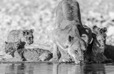 Famous for its floodlit waterhole Okaukuejo Rest Camp is also the administrative centre of Etosha. Most visitors travel though this camp with its characteristic stone tower and Etosha Ecological Institute is also situated within the camp. After sunset floodlights illuminate the waterhole. This is the best time and place to see the endangered black rhino. This archaic mammal can often be seen drinking alongside lion and elephant. The number and interaction of the animals is the major drawcard of Okaukuejo Rest Camp in Namibia.