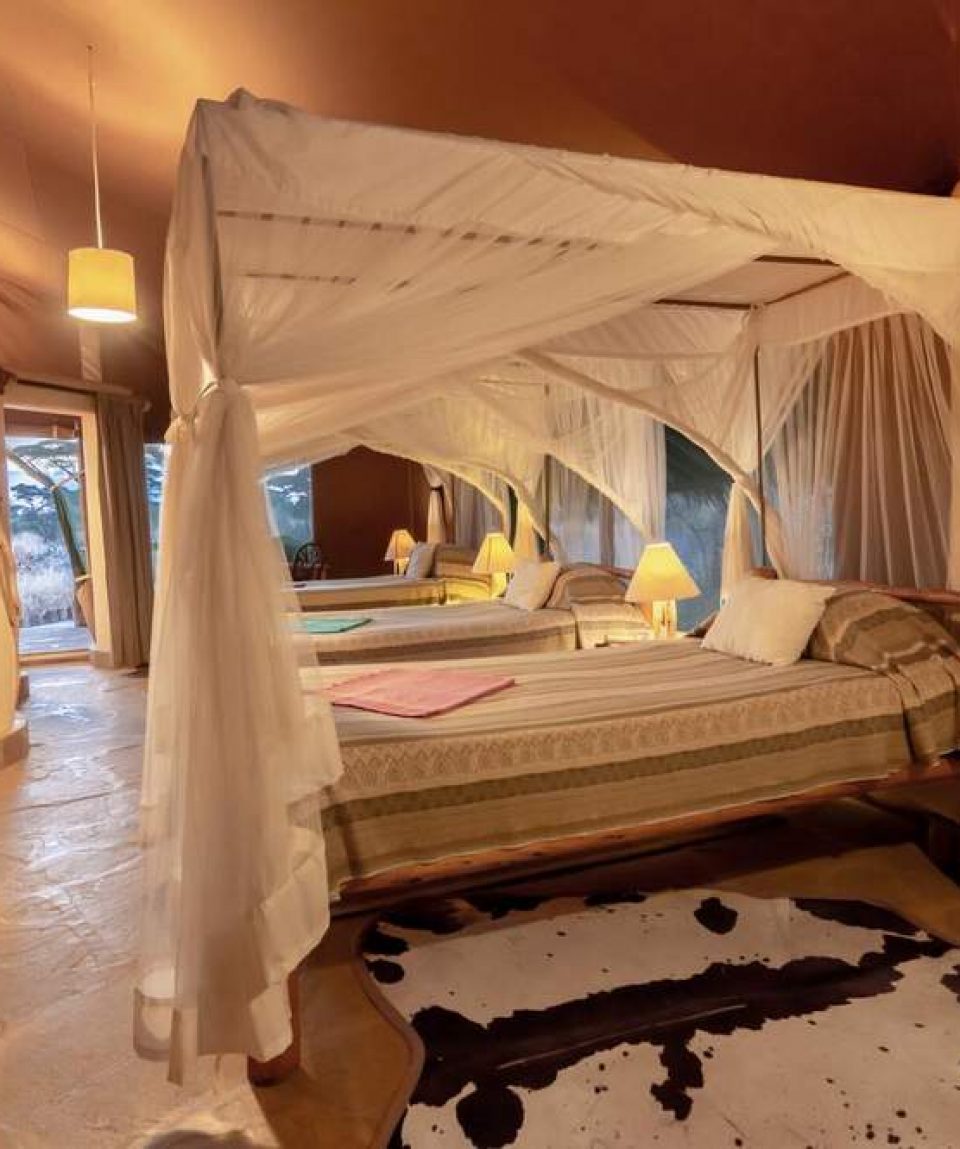 Kibo Safari Camp has 73 self-contained tents for single, double, triple and family accommodation. The beds have been custom designed and locally made using bush logs and will ensure a good night’s sleep! All tents have flush toilets, showers, and wash basins. You can enjoy your shower as you like: bubbling hot or refreshing cold. For the duration of your stay in the African bush, Kibo Safari Camp will be your home away from home!