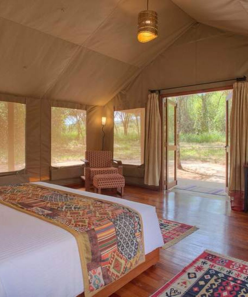 The Camp is uniquely laid out over the sprawling grounds that include rolling manicured greens, a virtual mini forest of indigenous shrubs and exotic trees, a large pond stocked with fish, mini bird sanctuary and an authentic Maasai village adjoining the Camp. By virtue of its location and layout, the camp offers an unparalleled plethora of activities and experiences from luxury tented living to bird-watching, mini golf, sport fishing and a unique insight into the Maasai culture at the adjoining Maasai village.